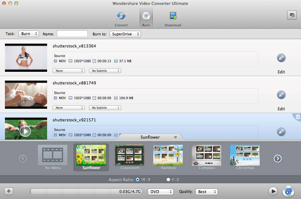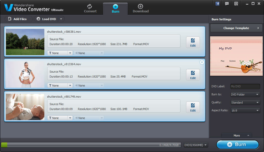 Choose your own unique DVD template and easily burn any video formats onto a DVD for the bigger screen's enjoyment.